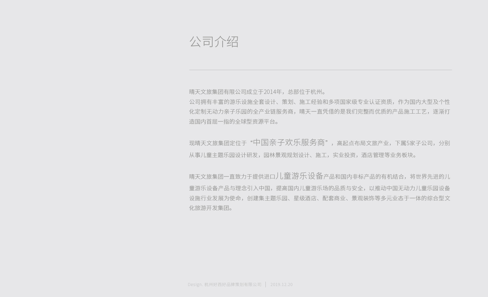 公司定位于“中國親子歡樂服務(wù)商”產(chǎn)品項目逾百項,現(xiàn)已覆蓋國內(nèi)多個省市地區(qū)的市政主題公園、市民廣場、游樂場、幼兒園,與綠城、中海、恒大、保利、融信、龍湖、萬達(dá)、綠地等知名地產(chǎn)商及幼教行業(yè)的浙江省級機關(guān)各幼兒園、浙師大各幼兒園、阿里巴巴云谷幼兒園等的長期戰(zhàn)略合作。企業(yè)成立以來獲ISO9001:2015質(zhì)量體系認(rèn)證、ISO4001:2015環(huán)境管理體系認(rèn)證、ISO45001:2018職業(yè)健康體系認(rèn)證、AAA級企業(yè)信用、AAA級重合同守信用企業(yè)等榮譽證書。