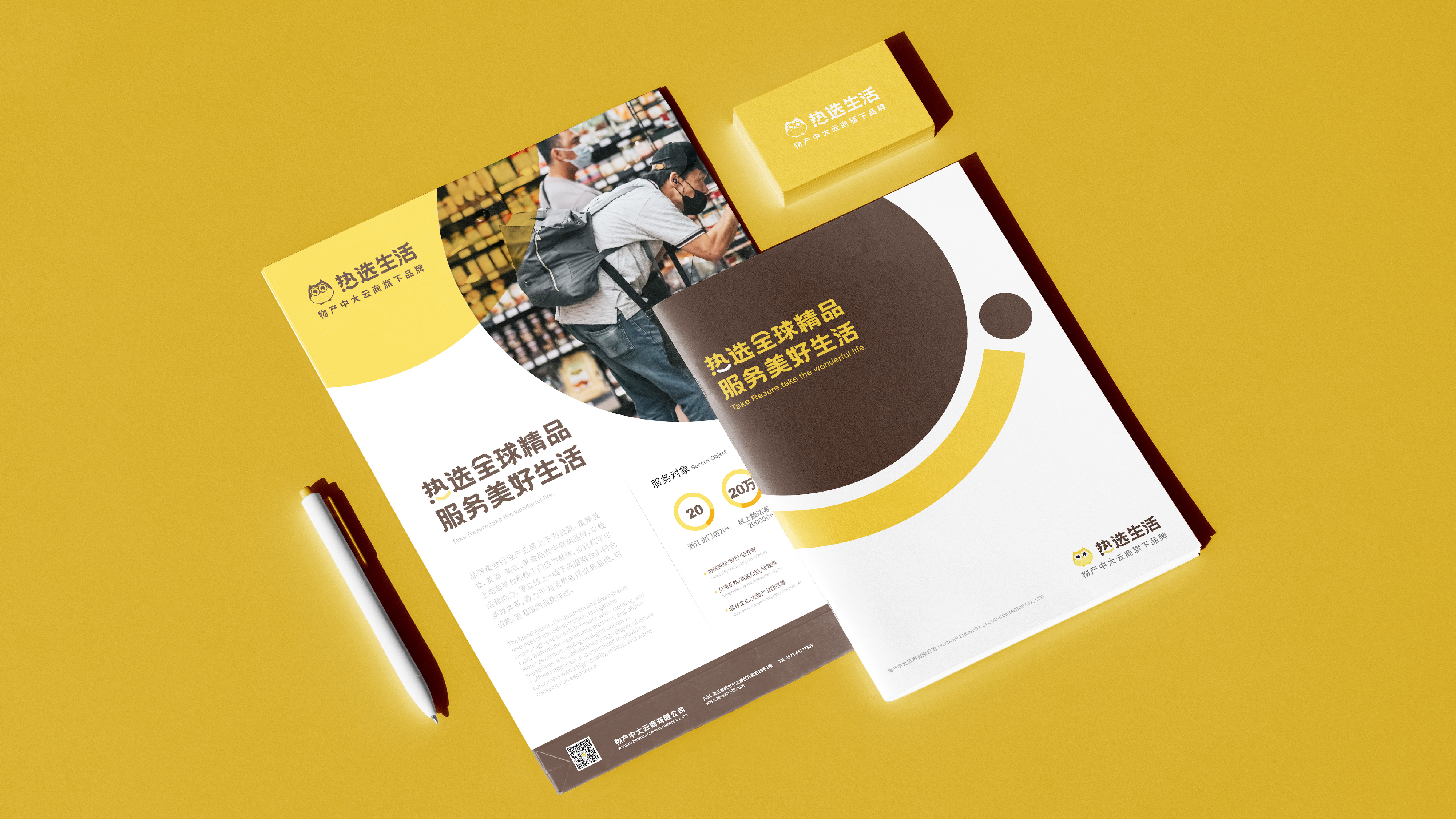 品牌集合行業(yè)產(chǎn)業(yè)鏈上下游資源,集聚美妝、美酒、美衣、美食品類中高端品牌,以線上電商平臺(tái)和線下門店為載體,依托數(shù)字化運(yùn)營(yíng)能力,建立線上+線下高度融合的特色渠道體系,致力于為消費(fèi)者提供高品質(zhì)、可信賴、有溫度的消費(fèi)體驗(yàn)。浙江熱選科技有限公司作為物產(chǎn)中大集團(tuán)旗下成員公司,公司緊抓“新零售”和消費(fèi)升級(jí)的風(fēng)口,開(kāi)創(chuàng)服務(wù)政府機(jī)關(guān)、企事業(yè)單位等特定C端的“熱選”新零售平臺(tái),取品牌理念“熱選全球精品,服務(wù)美好生活”的關(guān)鍵詞“熱選”“生活”組合作為品牌文字標(biāo)識(shí),用“熱”傳遞品牌服務(wù),“選”傳遞品牌功能,“生活”傳遞品牌業(yè)務(wù)場(chǎng)景。文字標(biāo)識(shí)以棕色為主色,提現(xiàn)品牌“品質(zhì)、質(zhì)感”的選品標(biāo)準(zhǔn);字體整體線條柔和,“選”字通過(guò)黃調(diào)“微笑”符號(hào)跳躍式點(diǎn)綴,進(jìn)一步突出品牌溫度。